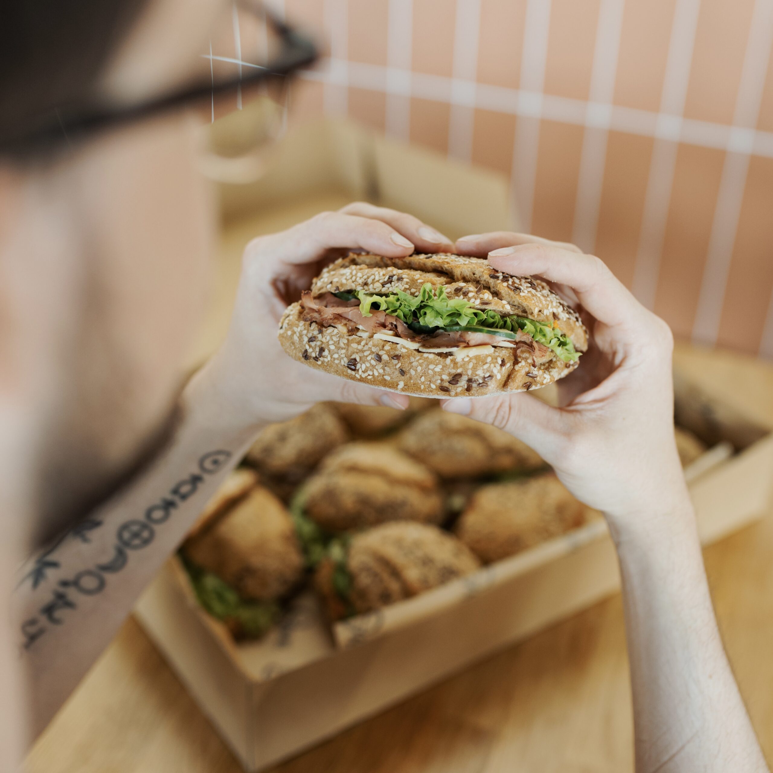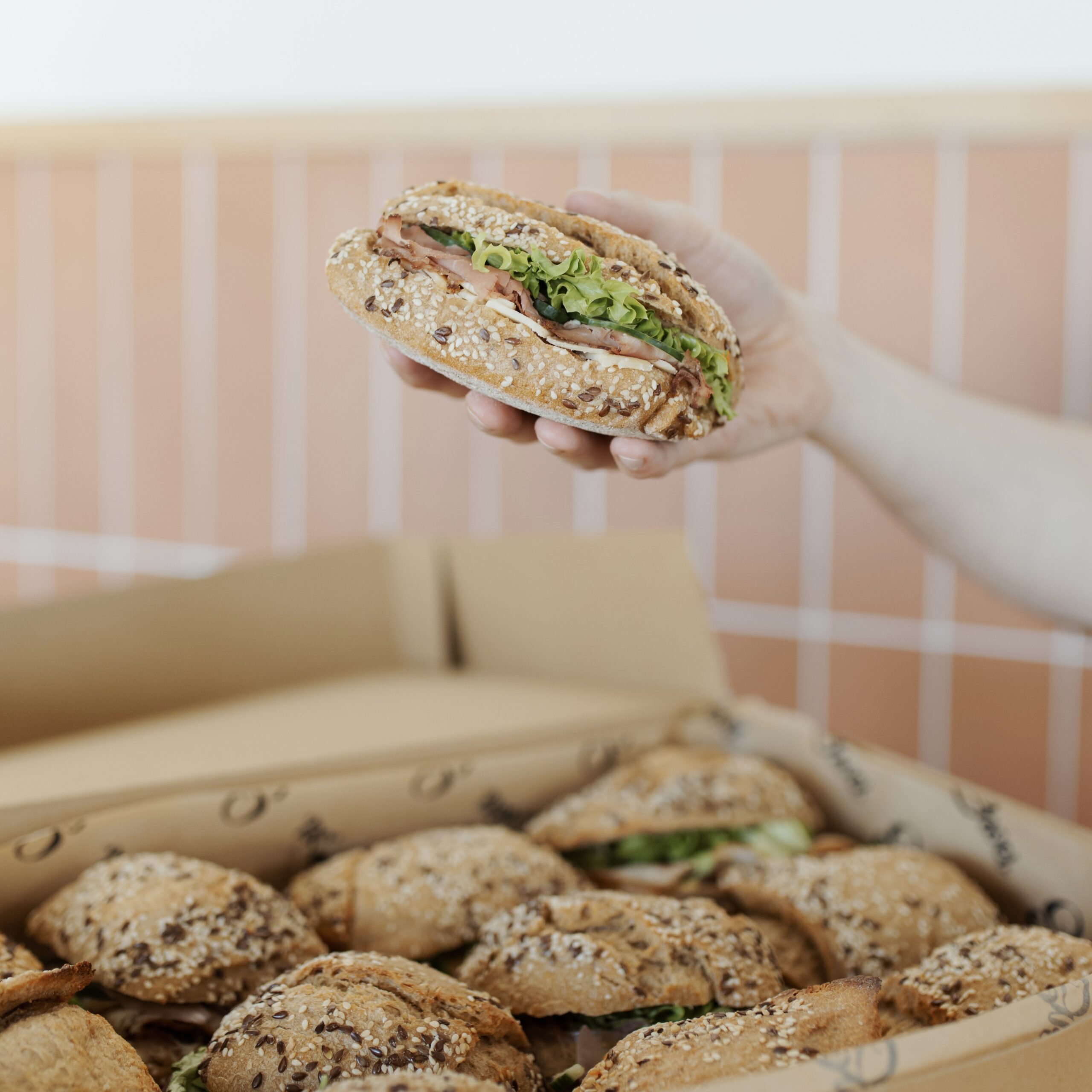 • wil je graag gehalveerde broodjes om te delen met je collega’s? Bestel dan onze sandwich box
