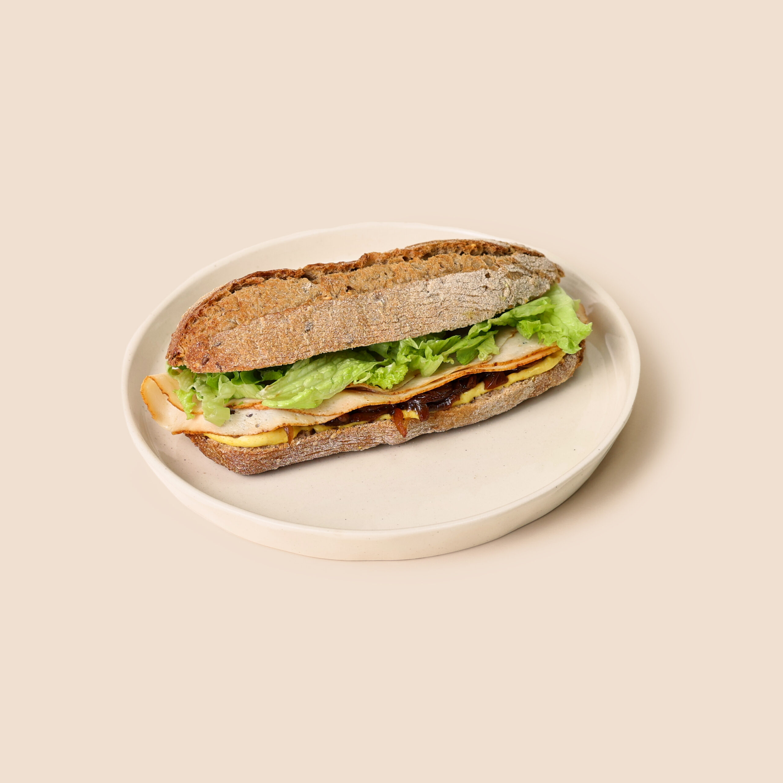 Proef de heerlijke combinatie van smaken met ons broodje KRUIDIGE KIPFILET. Belegd met verse sla, knapperige komkommer, kipfilet (halal), zoete gekarameliseerde ui en romige kruidenmayonaise. Perfect voor een smaakvolle en voedzame lunch!